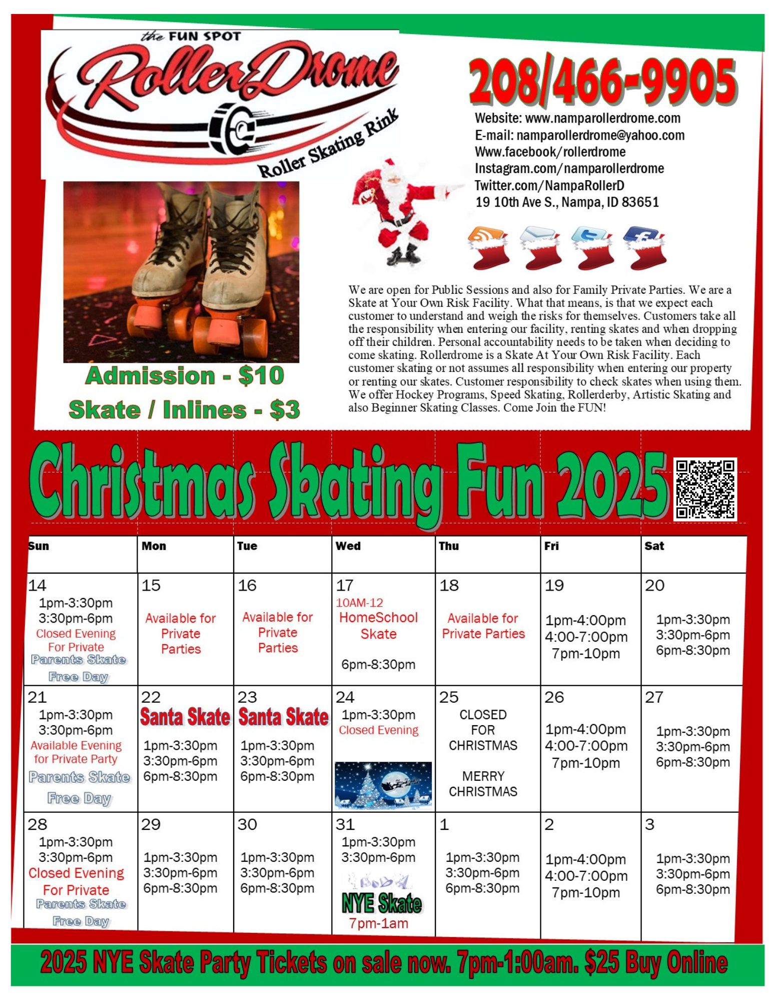 2024 Private party flyerThe Nampa Rollerdrome is the THE ORIGINAL place for roller skating in the Treasure Valley and has been in business since 1948! Come join the FUN!